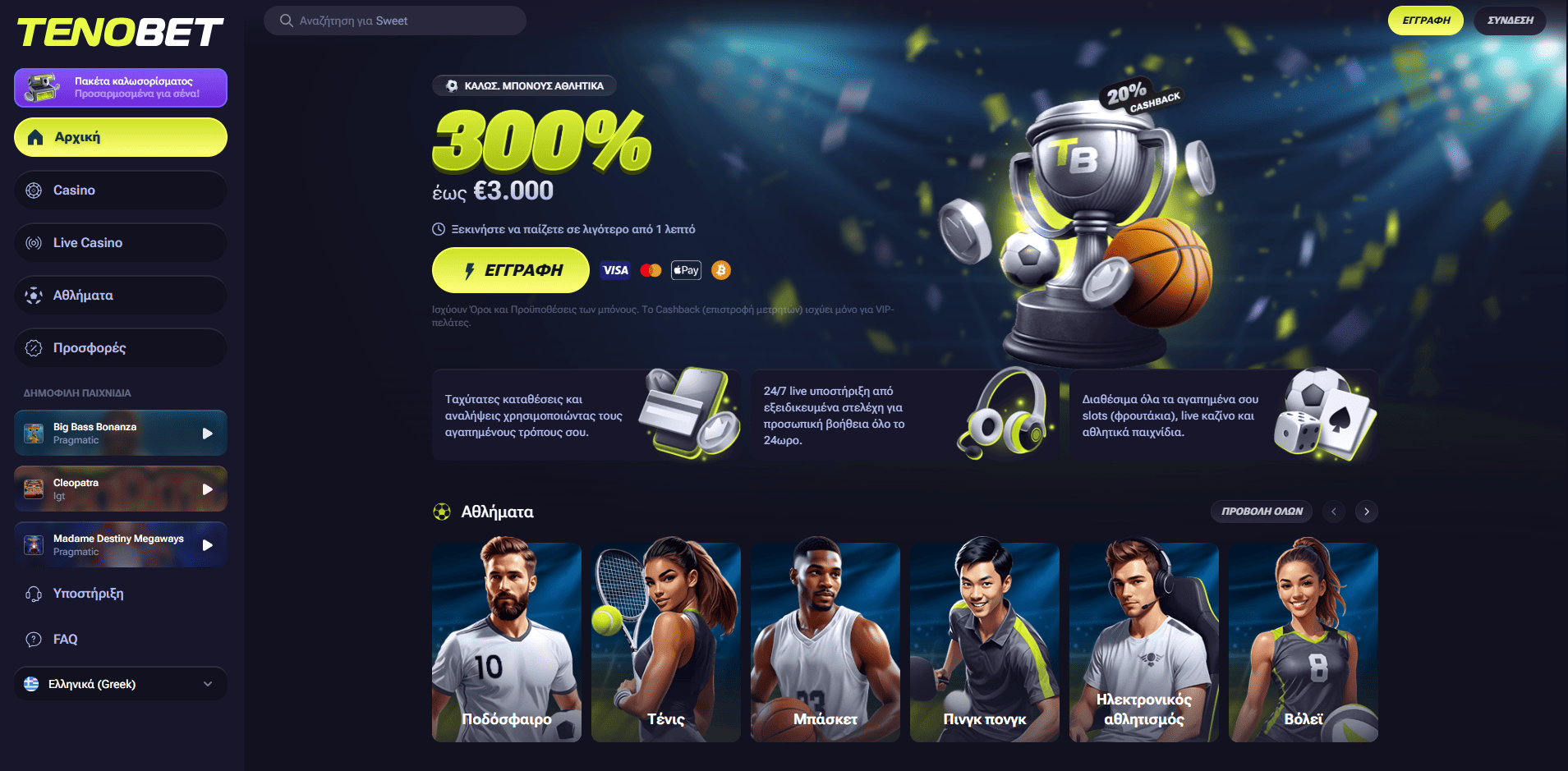 Το Teno bet κυριαρχεί στα τενιστικά στοιχήματα με αποδόσεις που ξεπερνούν τον ανταγωνισμό κατά 5-7% για όλα τα μεγάλα τουρνουά. Η πλατφόρμα καλύπτει πάνω από 2.500 ματς μηνιαίως από ATP, WTA, Challenger και ITF επίπεδο. Το live betting διαθέτει real-time στατιστικά για winners, unforced errors και first serve percentage που δεν είναι διαθέσιμα στο Binobet.